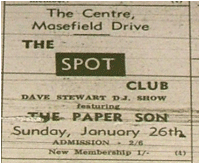 Several new Discos opened in ’69, The Spot Club based at The Centre, Masefield Drive was a very popular night out, we read in the Tamworth Herald of 18th April how after only being open for two and a half months The Spot Club now had 500 members. In December we read how each Spot Club discotheque was handing over £5 to a handicapped nursery to help meet its running costs of £9 a week. Club members were paying 6d a week on top of their admission fee to the Sunday night sessions to raise money.